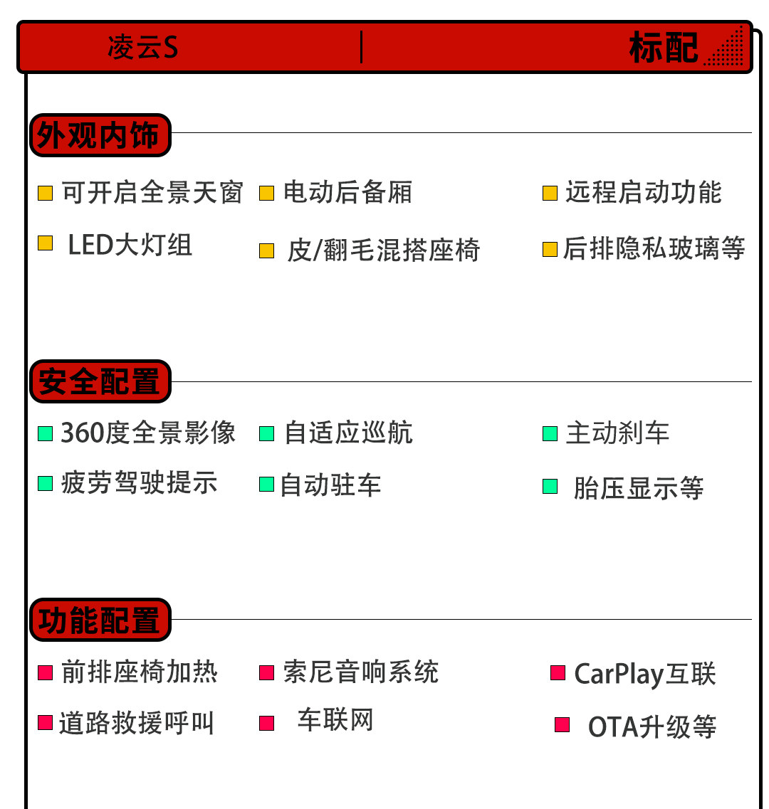 当然,作为新款车型外观也同样会有些细微的变化,凌云S自带了运动涂装套件,例如黑化的前格栅、轮毂尾灯、以及红色的卡钳等部件,也就是当代年轻用户看重的运动既视感。毕竟视觉效果上运动感就比普通版要强上一丢丢。