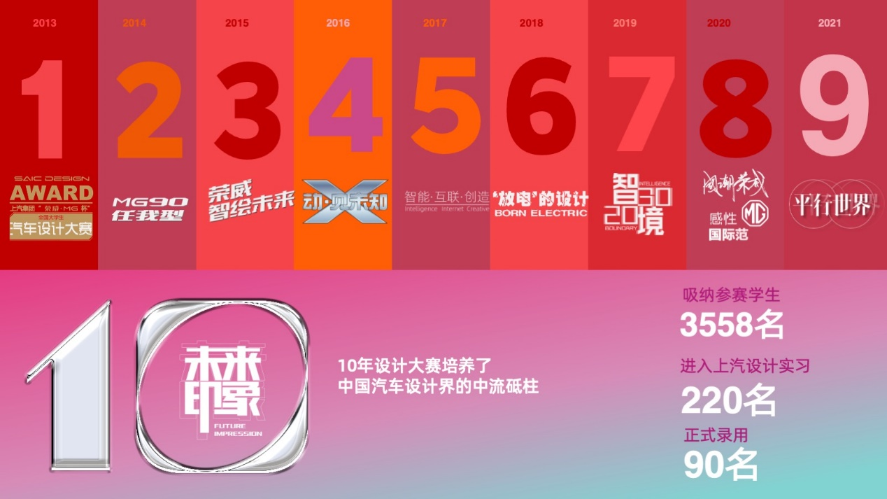 从2013年创立至今,上汽设计国际挑战赛迎来第十周年。此项赛事已成为全球范围内,由中国汽车企业主办的持续时间最长、规模最大的专业设计大赛,为汽车设计行业挖掘了一大批优秀的青年设计人才,为中国汽车产业输送一大批具有国际化视野的明日汽车设计之星。
