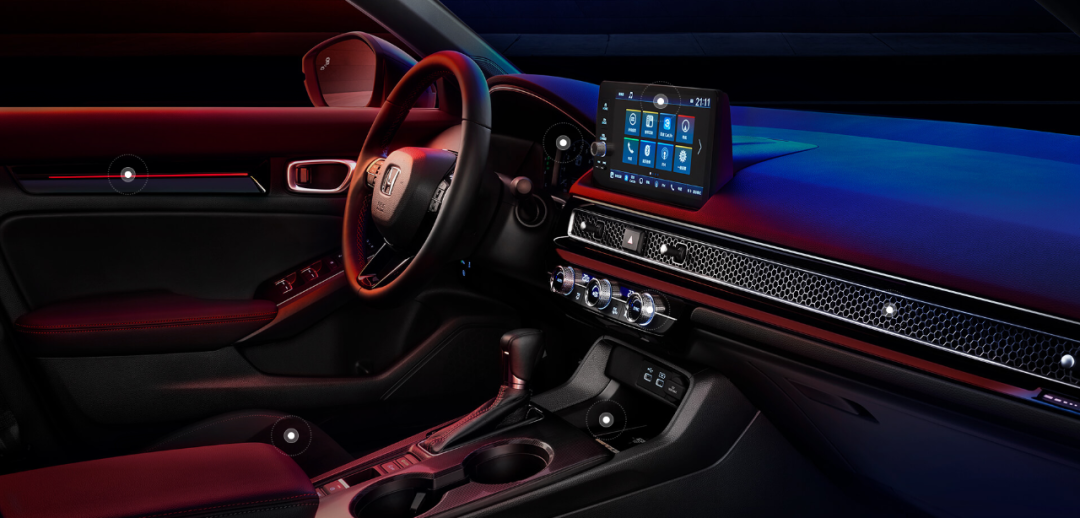第十一代思域拥有照明出色的ADB自适应远光灯,极富质感的外观设计,以及平直腰线勾勒出的动感车身,车身长宽高达到了4674×1802×1415mm,轴距达到了2735mm,它比以往更长、更宽,拥有更包容的空间,可以满足你对生活方式的所有想象。