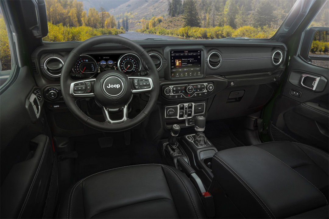 内饰方面,新车的内饰布局与牧马人保持一致。内饰设计谈不上特别出色,也没有太多科技感,配备小巧的液晶屏幕并且带有较多的实体按钮,平直而又简单。