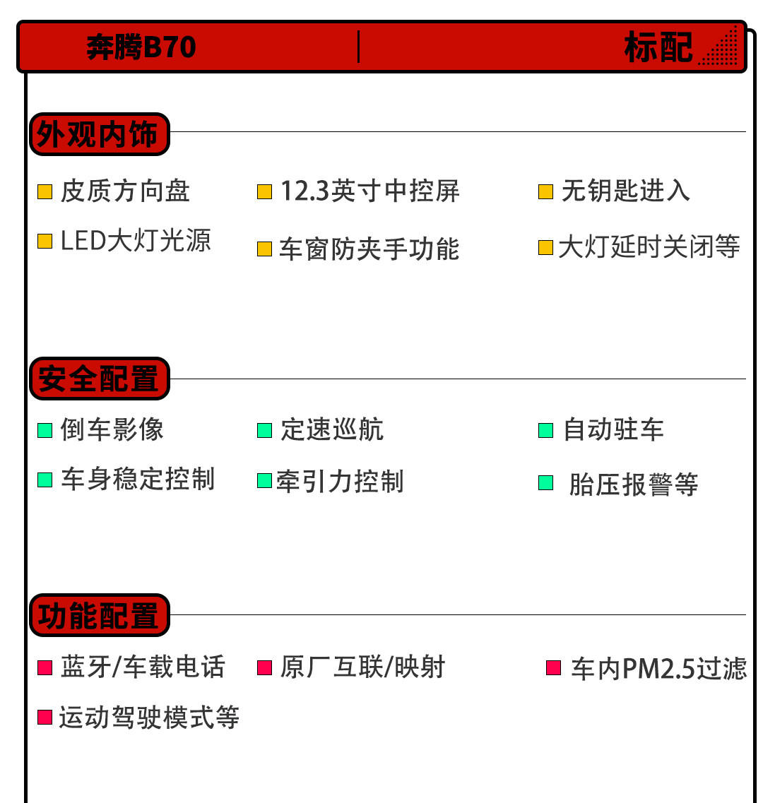 整体来看,其实在价格上奔腾B70就相当有诚意,虽然一些短板也比较明显,但是综合实力的水平放在同级别中可以称上比较主流了。