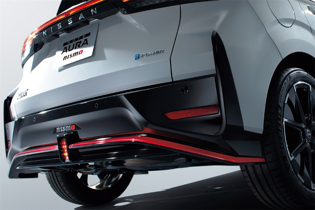 外观方面,据了解新车的设计灵感来源于日产的Formula E赛车,因此,日产全新Note Aura Nismo采用大量空气动力学套件,