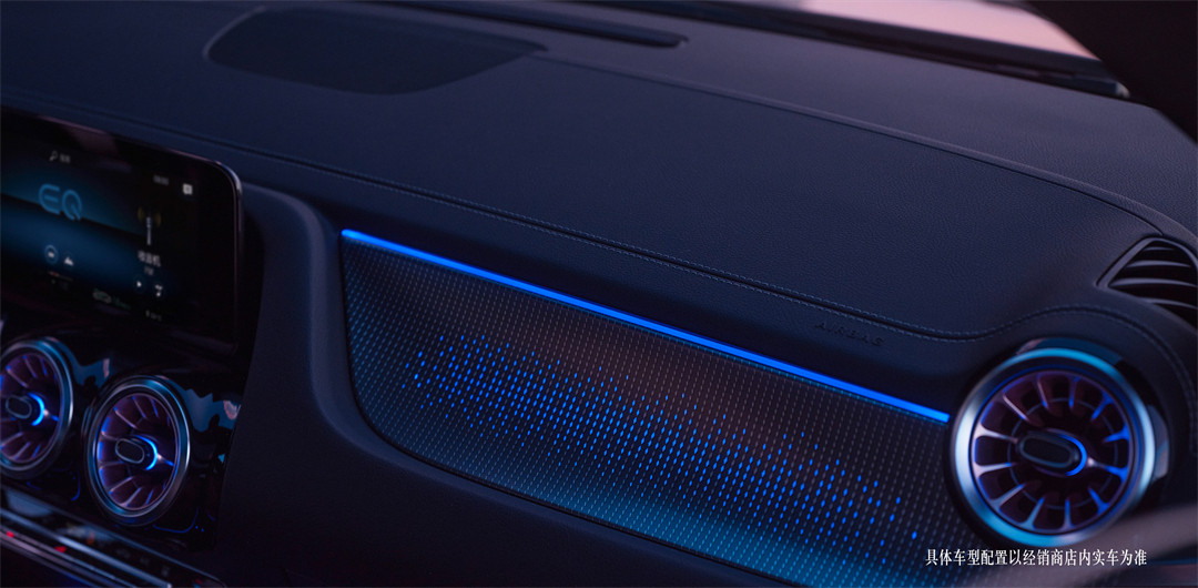 内饰方面,新车的基本框架与EQA 300保持高度一致,同样采用了简约的内饰布局。配备三幅式的多功能方向盘、炮筒式空调出风口、双10.25英寸液晶屏幕、支持CarPlay/CarLife手机互联、64色氛围灯等等。