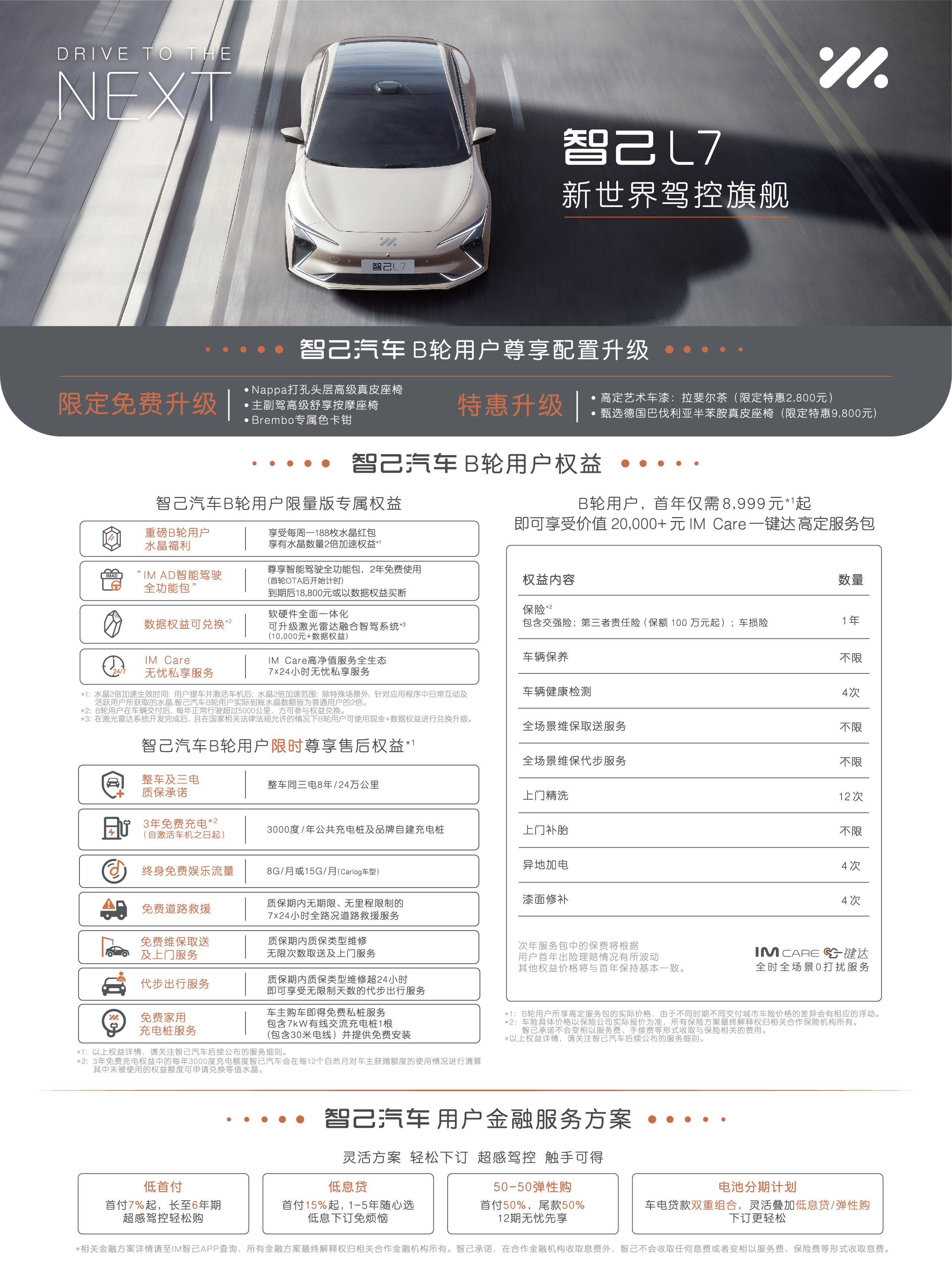 此外,B轮用户还将尊享“ IM Care 7*24小时无忧私享服务”,“IM Care一键达高定服务包” 首年仅需8,999元起,一键解决用车过程中的车险、维保、异地加电、精洗等高频服务。