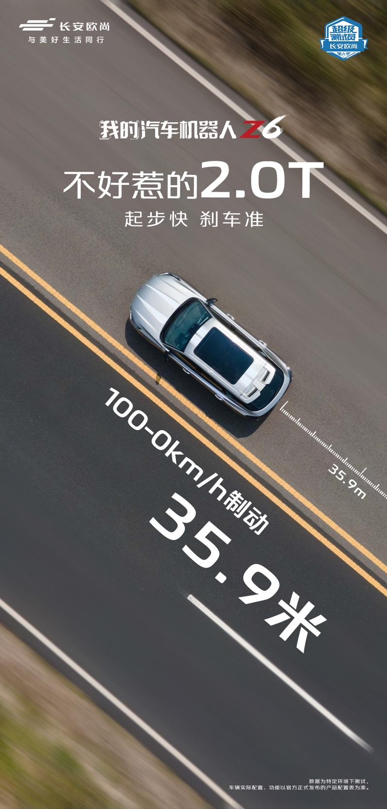 好的动力,不能只有一股蛮力,要“冲得快”,还要“刹得住”。也就是说,不仅有赛道级的动力表现,还要有赛车级的制动性能。活动现场,欧尚Z6装备两款发动机的车型制动距离均为35.9米,做到了速度与安全的兼顾。