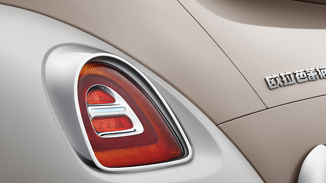 其中充满流线型的造型,就与甲壳虫的设计同出一脉,车灯、引擎盖、前包围甚至是车灯,都是极其圆润的设计,对于不少经典车型印象中的复古元素,在欧拉芭蕾猫上都得到了应用。