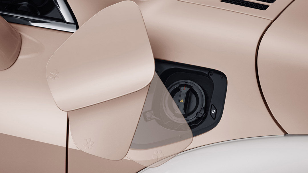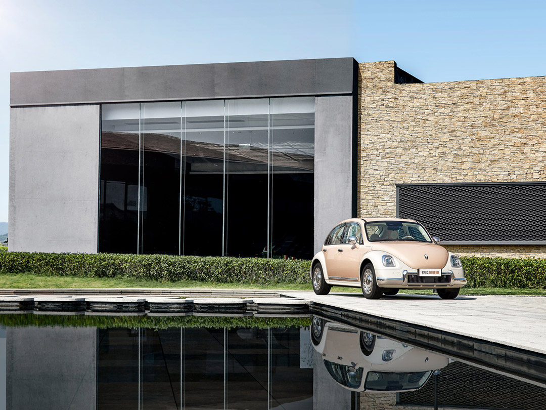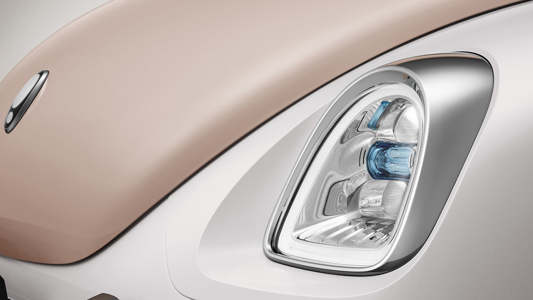 但是复古造型下其实充满现代科技的设计,车灯进行了巧妙的分层设计,车辆的后视镜充满小心思,不仅采用圆形设计,连接杆还是镂空设计。