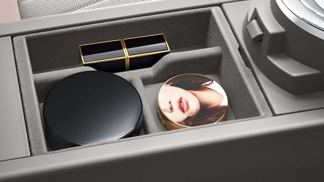 配备了大光圈的化妆镜,独立的口红置物格,如果这是一台SUV或者跨界车型,我甚至感觉欧拉芭蕾猫都要装上全身镜和补光灯。