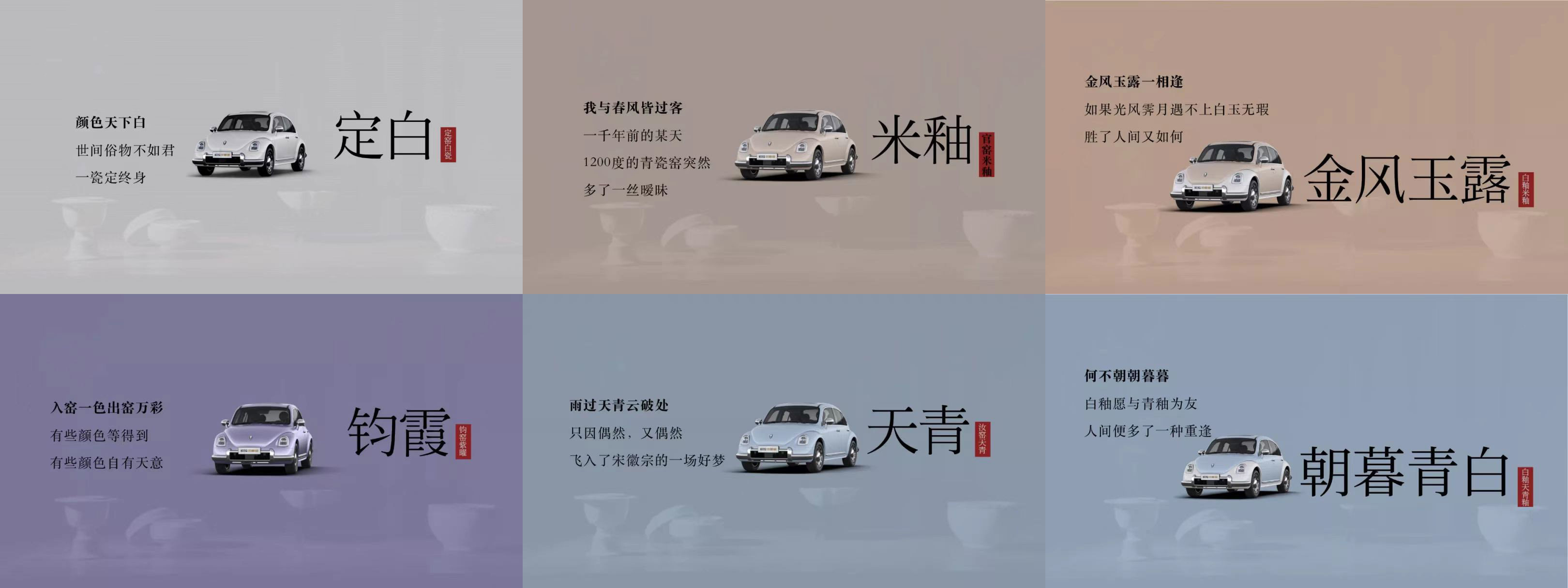 就在欧拉宣布预售消息的时候,还发布了欧拉芭蕾猫宋瓷色系,分别有定白、天青、米釉等,颜色的选择和名称的确定,在每一处细节都添上了文艺的气息。
