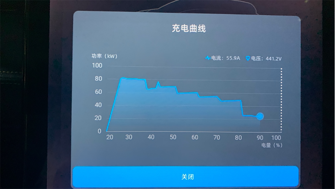 小鹏G3i快充时间只要35分钟,此次充电可以看到充电功率最高为80千瓦,并且在充到80%后,为了保护电池而降低到20千瓦左右。