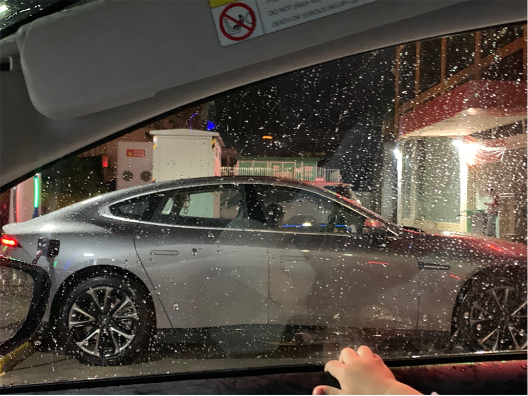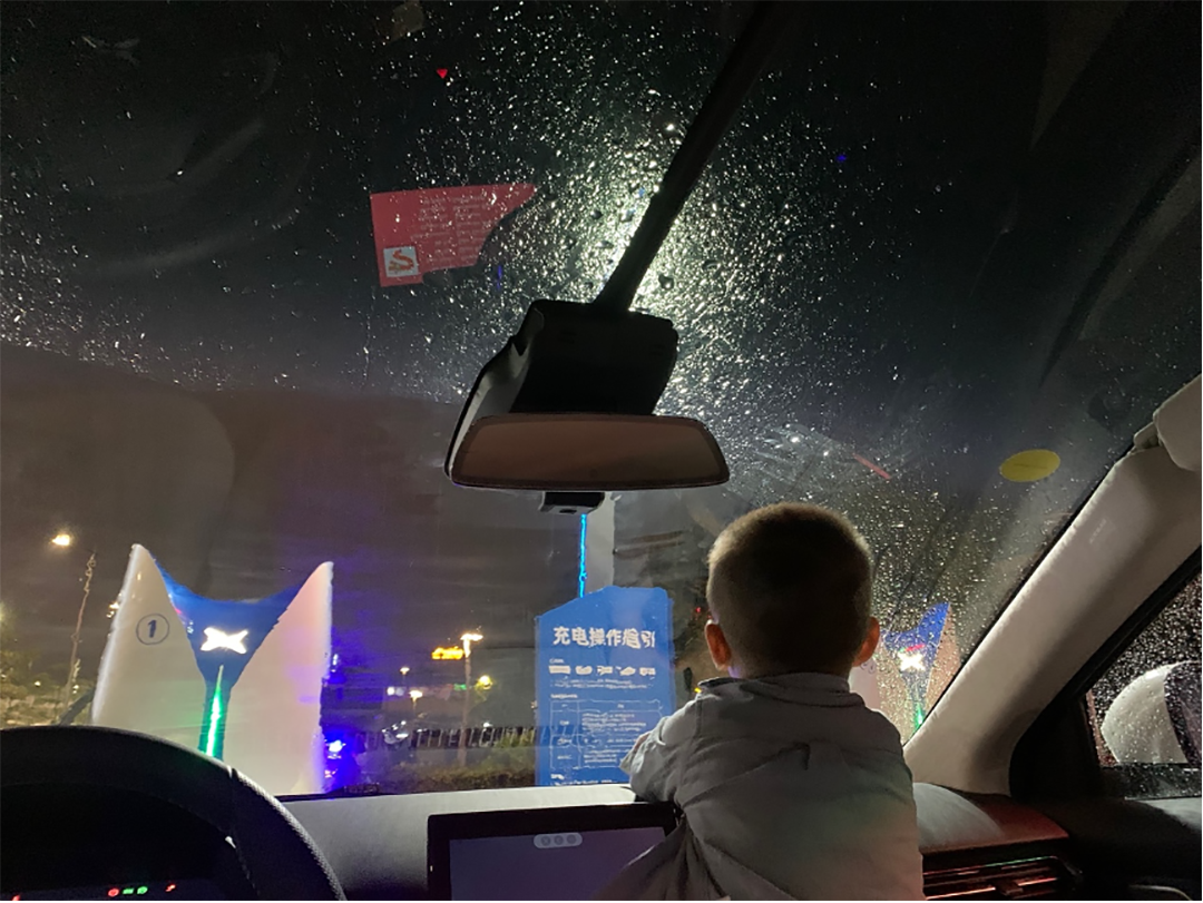 使用好几天后,我在续航还有100km时就开始前往小鹏超级快充进行充电,原本这还能再跑个一两天,但那天晚上,为了不让小孩子看电视(结果实际失败了),也为了散散心,我就决定带着他一起去充电了。