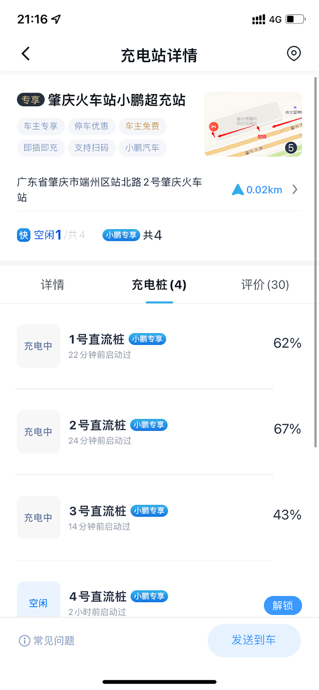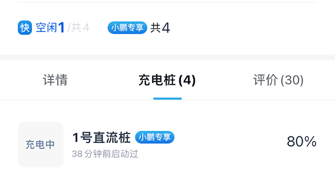 在肇庆这个三四线城市,也属于小鹏汽车的产地,至于广州就更多了。我所在的区就有着两个小鹏超级快充。出于自营模式,充电桩也更有保证,不会出现坏桩的情况,而且我们还能通过APP了解充电桩的使用情况,甚至是在充车辆的电量,这就能更好把握时间了。