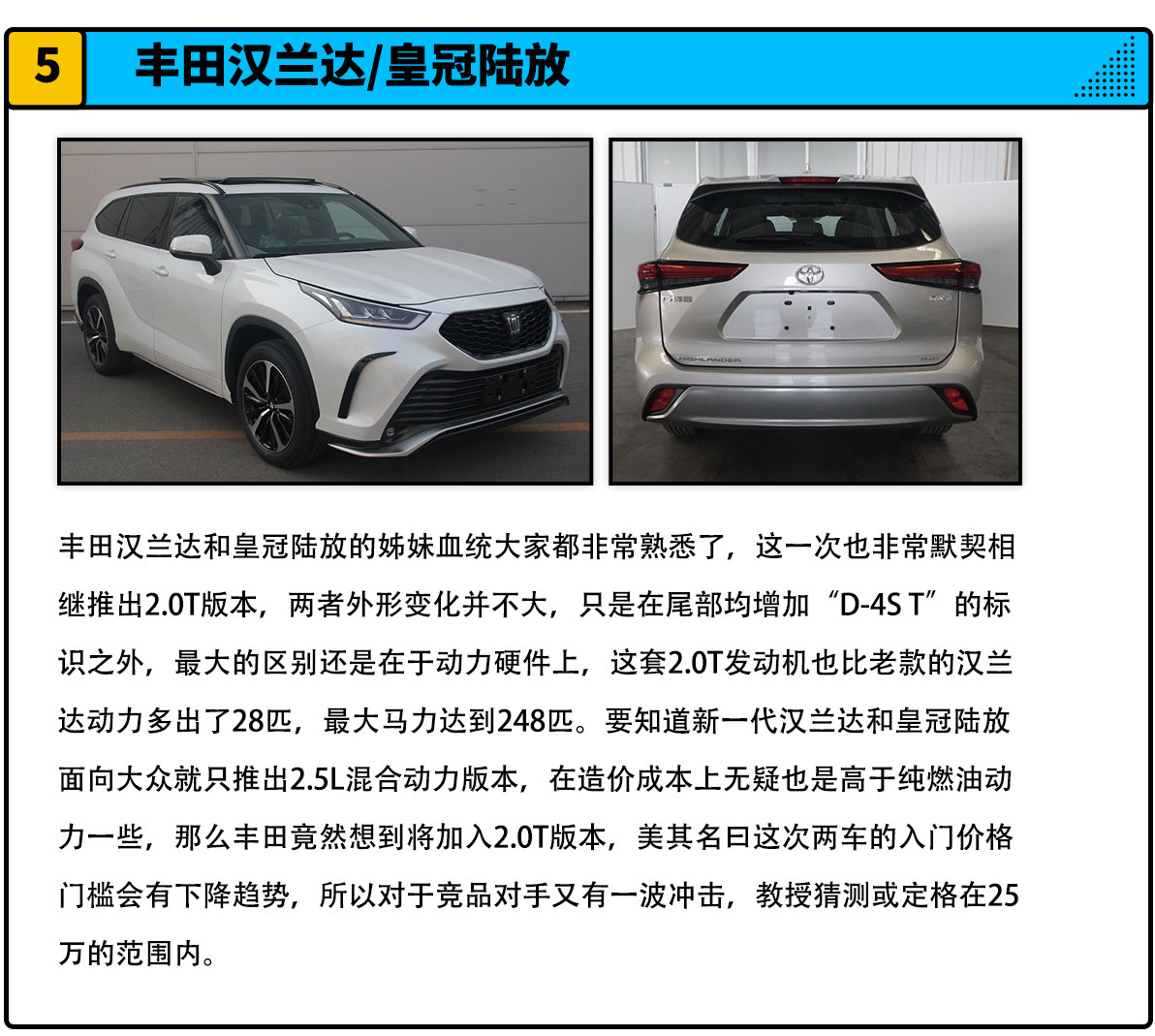 虽说国际局势不可控,车型售价涨!涨!涨!也属于常态,但是嘛,新车筹备工作的脚步丝毫没有怠慢,这次国内最新一期的工信部申报图也正式揭露,这波新车可谓是百花齐放,款款都超级重磅,看来持币用户的春天来了~
