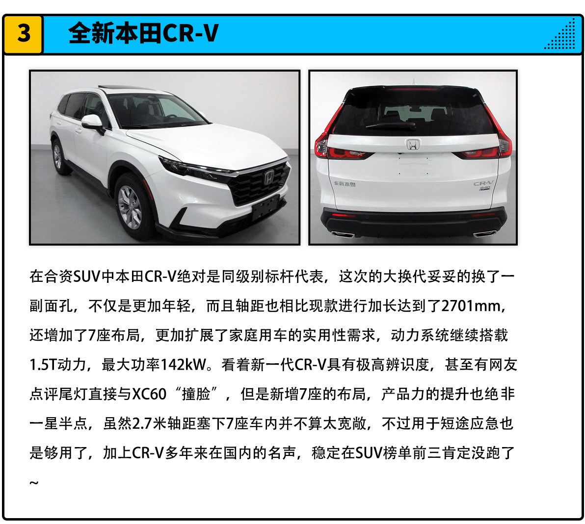 这次申报的车型可谓是阵容非常强大,各种标杆车型纷纷焕新,例如新一代CR-V、2.0T版汉兰达/皇冠陆放都是消费者最热捧的车型,同时国产品牌的WEY圆梦、全新红旗H5、蔚来ES7等势头也不容小视。另外,4-8月份均是汽车销售的传统淡季,若以上重磅新车要是扎堆新上,搞不好这一下真能打破目前汽车界传统淡季的局面,所以持币用户赶紧准备起来吧!
