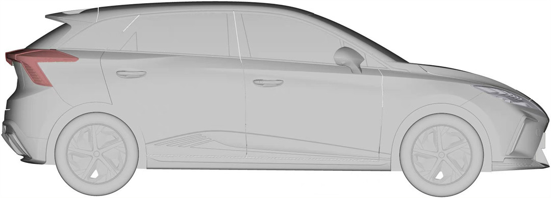 来到车侧,虽然目前暂时未获取正侧的实拍图,但根据此前给出的专利图以及部分细节预告图来看,新车的车侧带有锐利的线条所点缀,并且配备刀锋式的低风阻轮毂设计,运动感较为强烈。