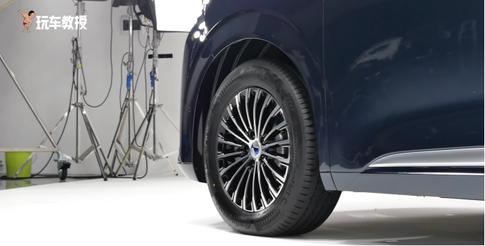 轮毂部分,它采用了密辐条的设计,尺寸达到18英寸,让整台车更加的饱满。