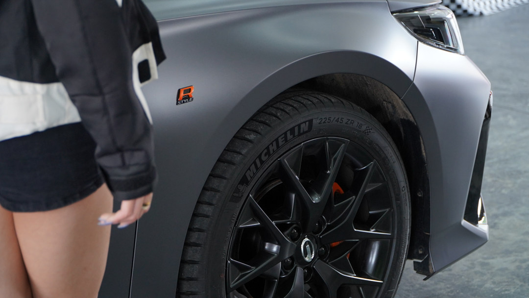 新车在前脸、前翼子板、车尾等细节处都有R-style标识来强调自己的身份,侧面的裙边也更加立体突出。轮毂变成了熏黑颜色,这在普通版上是选装配置,里面的卡钳装饰也从黄色变成了橙色。