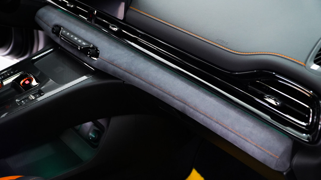 同时在方向盘、中控台、座椅、门板等部位的皮质换成了超纤麂皮,以较少激烈驾驶时身体的滑动和增强运动感。
