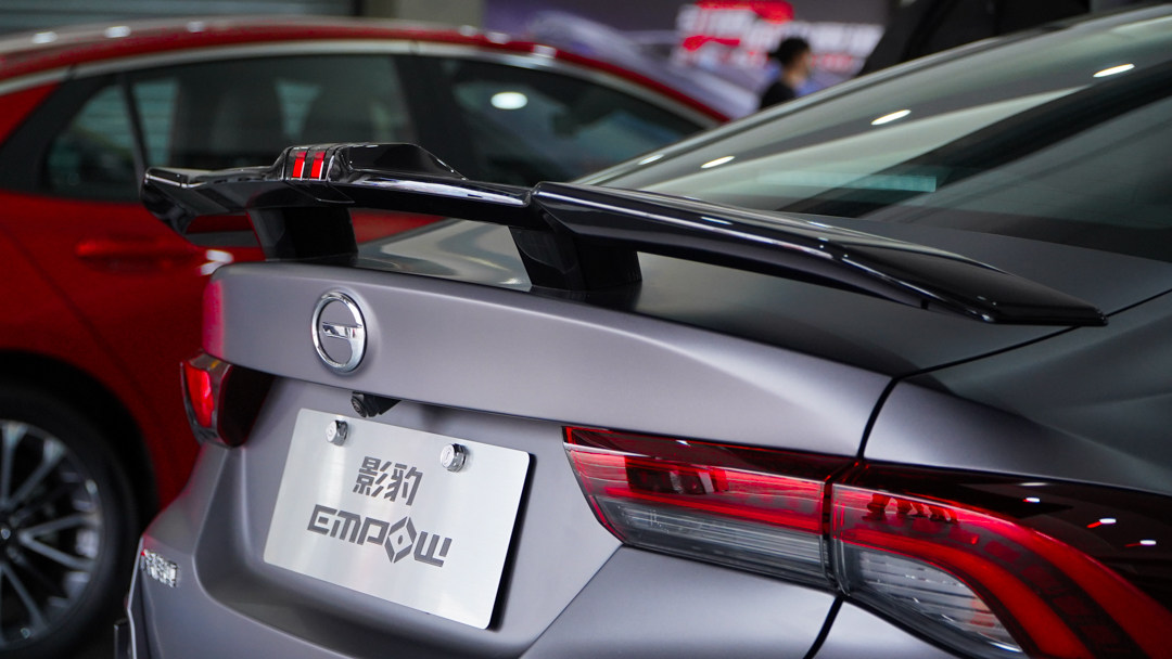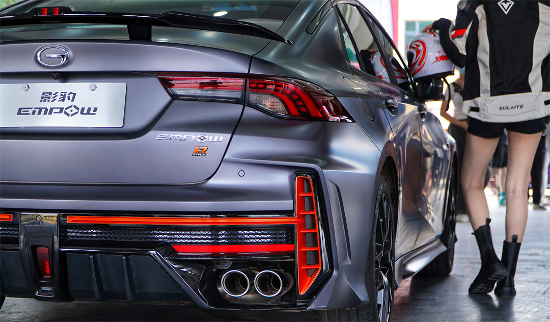 尾部增加了集成高位刹车灯的大尾翼,保险杠造型与车头相呼应,底部拥有着硕大的气流扩散器,中间的雾灯被设计成了类似于F1赛车的领航灯。