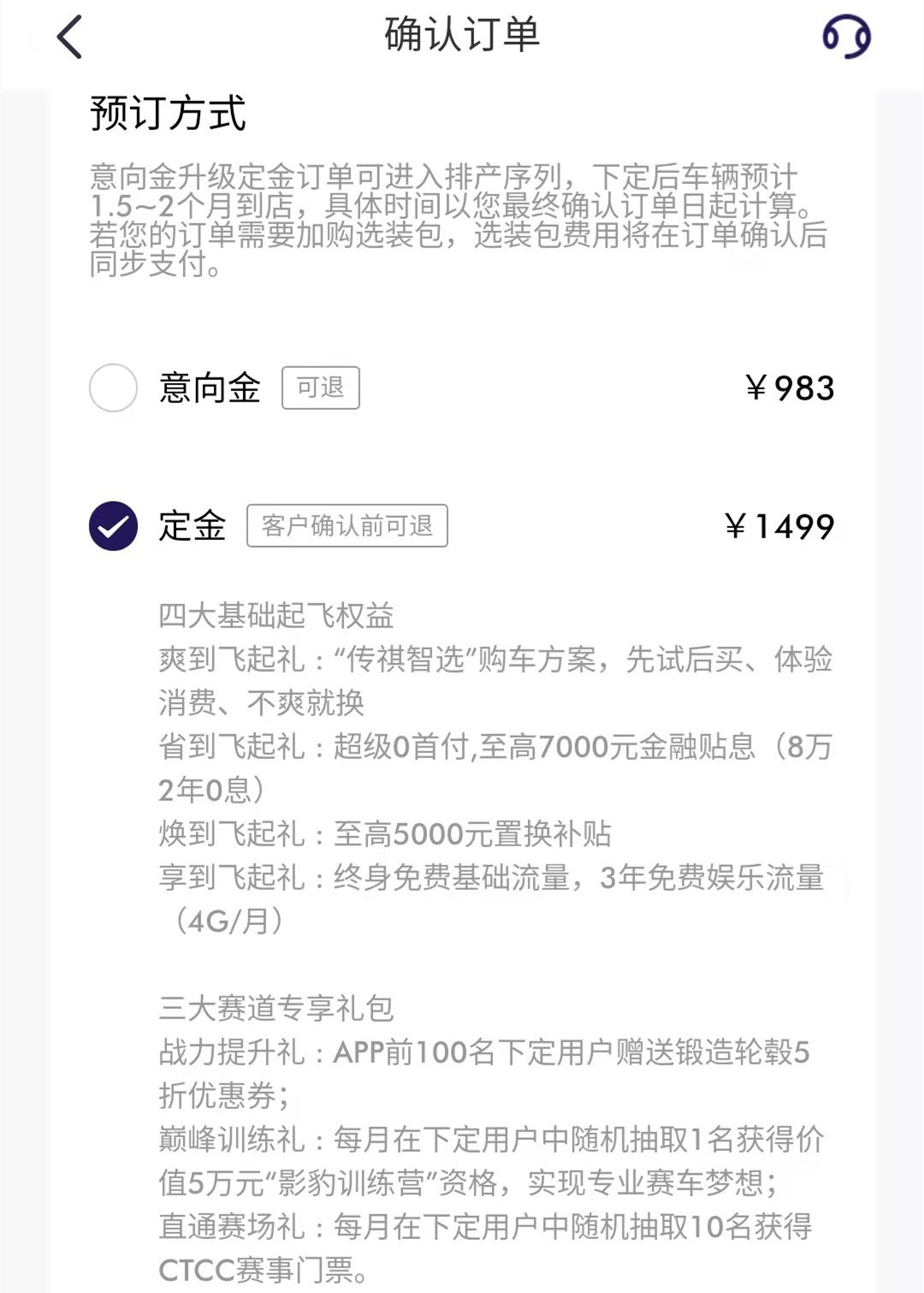 2. 每月在下定用户中随机抽取1名获得价值5万元的“影豹训练营”资格,由隼鹰赛车学院使用影豹赛车进行课程培训。