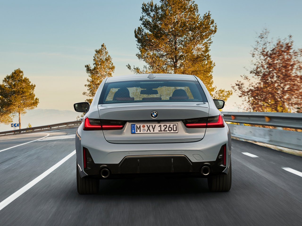 车尾改款亮点来自于下包围设计的变化,尾部扩散器变得更加激进。两侧线条轮廓呈现“L”型装饰也在呼应前脸包围设计。双边单圆桶排气则是简单粗暴彰显出宝马3系极致的运动化氛围。