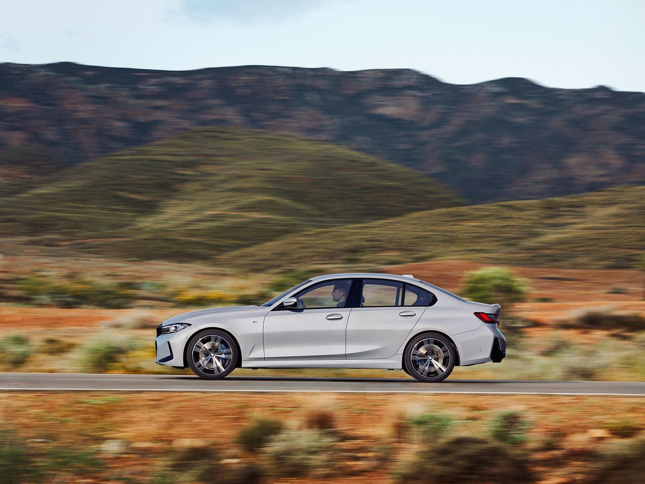 中期改款宝马3系在侧面的线条处理上与现款在售车型保持一致。而侧面唯一不同在于采用了全新五幅式轮毂设计,并且采用蓝色喷漆卡钳突显出“独有的宝马运动气息”。