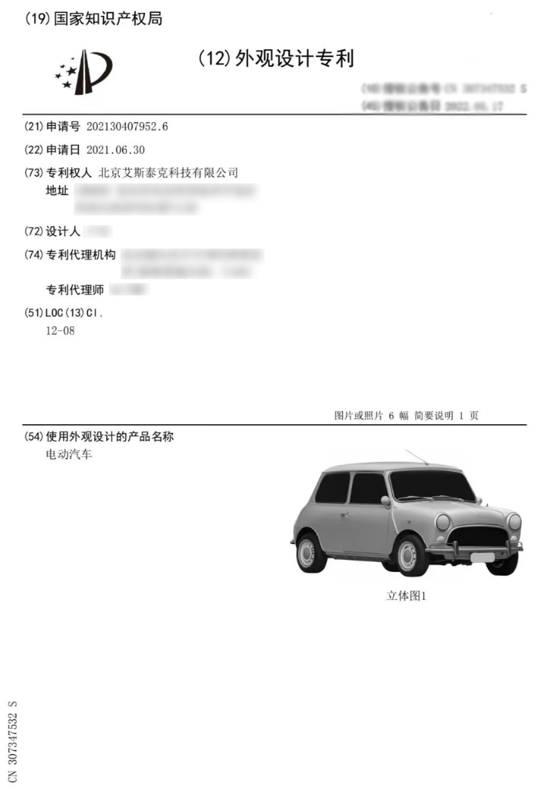 然而这并非宝马所申请的外观设计专利,而是由北京艾斯泰克科技有限公司所申请的外观设计专利,这一点让人感到非常意外的。