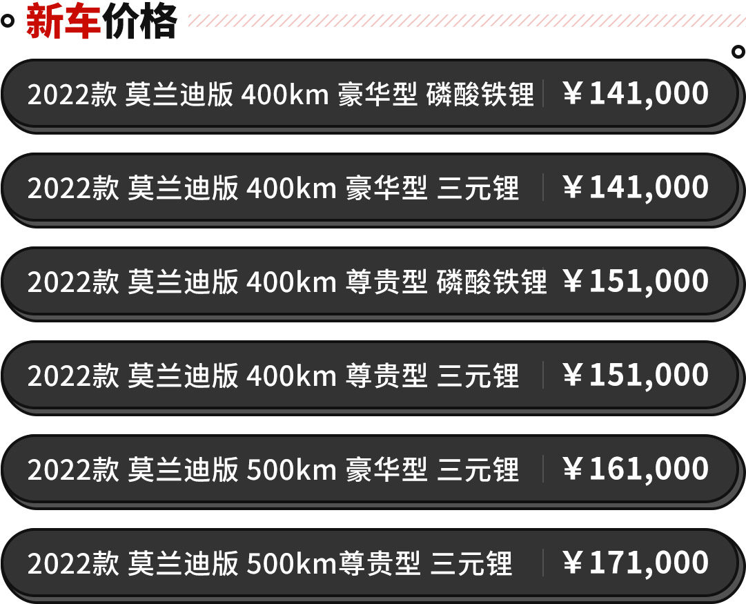 目前提供四款车型可以选择,同时新车将搭载一台最大功率为105kW的永磁同步电机,峰值扭矩达到210N·m,拥有三元锂和磷酸铁锂电池两种电池组,NEDC续航可以达到400km和500km。