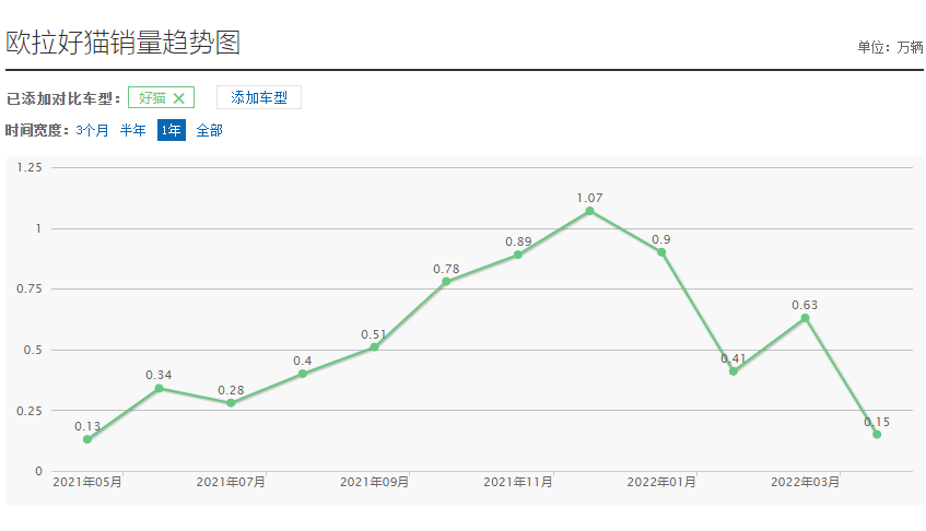 2020年11月上市至今,可以看到欧拉好猫的销量正在节节攀升,目前好猫累计销量已经达到了五万多台的销量,其中2021年12月份单月销量更是突破了万辆大关。