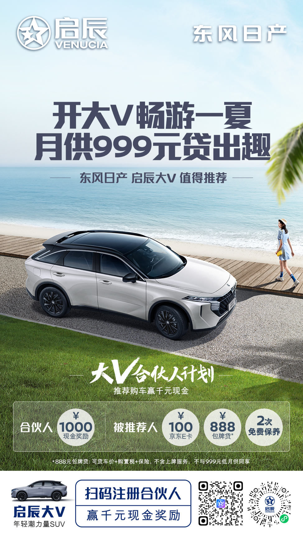 有口皆碑,宠粉有礼,启辰品牌靠谱的品质,以及贴心的服务,让越来越多车主加入到启辰车主大家庭中,实现“人传人”的口碑效应。2022年,启辰大V合伙人计划上线,很多东风日产启辰的新老朋友因为靠谱的品质表现,自愿选择成为大V合伙人。每一位关注启辰大V的朋友和车主在注册成为大V合伙人后,即可获得一张1000元的现金券,只要成功推荐试驾或购车,双方均可获得相应奖励。