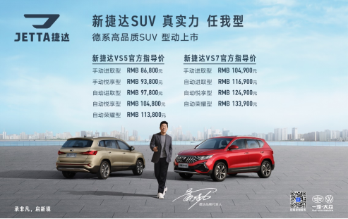 5月20日表白日,新捷达VS5、新捷达VS7型动上市,新车在外观、内饰、智能配置方面有所升级,更加优雅大气、时尚运动,进一步迎合了当下年轻化消费浪潮。其中,新捷达VS5上市指导价为8.68-11.38万元,新捷达VS7上市指导价10.49-13.39万元。