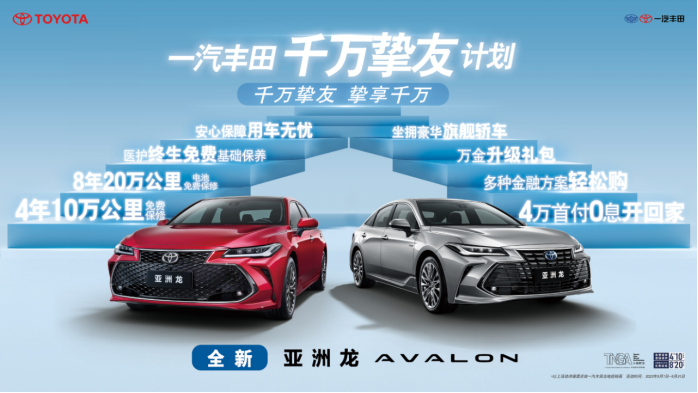 而目前,消费者即可以4万首付0息金融方案,将全新亚洲龙开回家。如果是老客户置换全新亚洲龙,也可享受至高1万元置换基金。此外,万元升级礼包、4年10万公里免费基础保养、8年20万公里电池免费保修等福利,更是进一步降低了大家后续用车成本。更详细的政策信息,大家可咨询一汽丰田当地经销商。