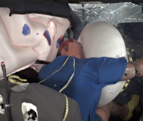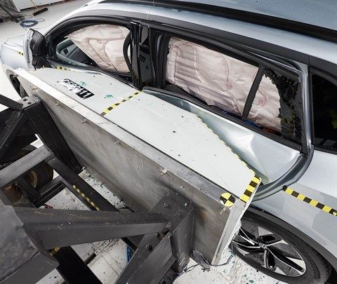 针对中型SUV,IIHS使用了新的假车碰撞标准:重量从1497kg(3,300磅)增重至约1905kg(4,200磅),撞击速度从50km/h加快至60km/h,撞击产生能量增加82%。所以对于测试车辆的边梁、B柱的考验会更大。