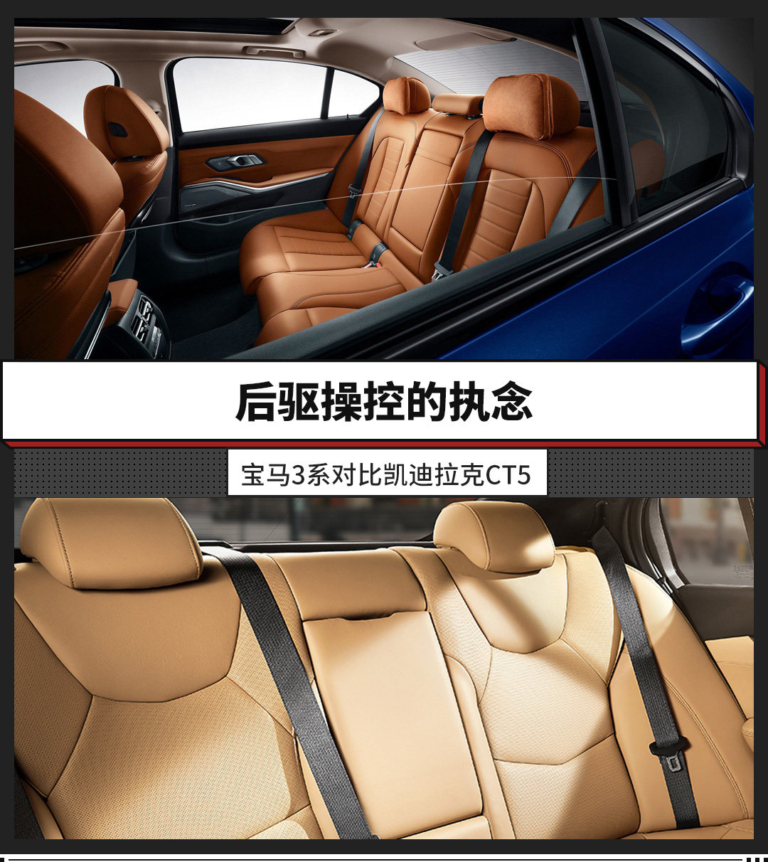 宝马3系之所以加长,是为了更符合中国人的消费习惯,即使强调运动,但作为中级车也必须具备一定的实用性;凯迪拉克CT5自然也无法忽视这种法则。先看两车车身尺寸,宝马3系长宽高轴距分别为4829/1827/1463/2961mm,凯迪拉克CT5分别为4824/1883/1445/2947mm,数据各有优劣,实际表现如何呢?