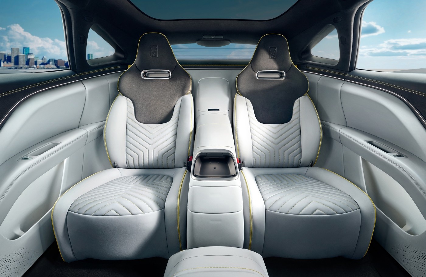 座椅两侧曲面向内包裹,面料采用NAPPA真皮与麂皮相互拼接,突显出高端智能SUV内饰座舱该有的尊贵氛围感。值得一提的是,后排还可根据自身需求选装双座版本,并支持电动调节、加热和按摩功能。