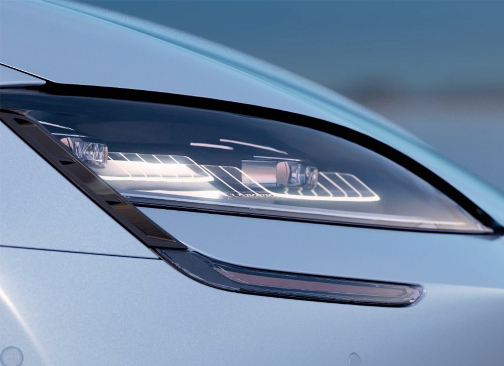 前脸采用一贯封闭式设计,两侧大灯组造型生动形象,与保时捷Taycan有异曲同工之妙,下方还配备了水波纹灯光效果,点亮后极具视觉冲击力。