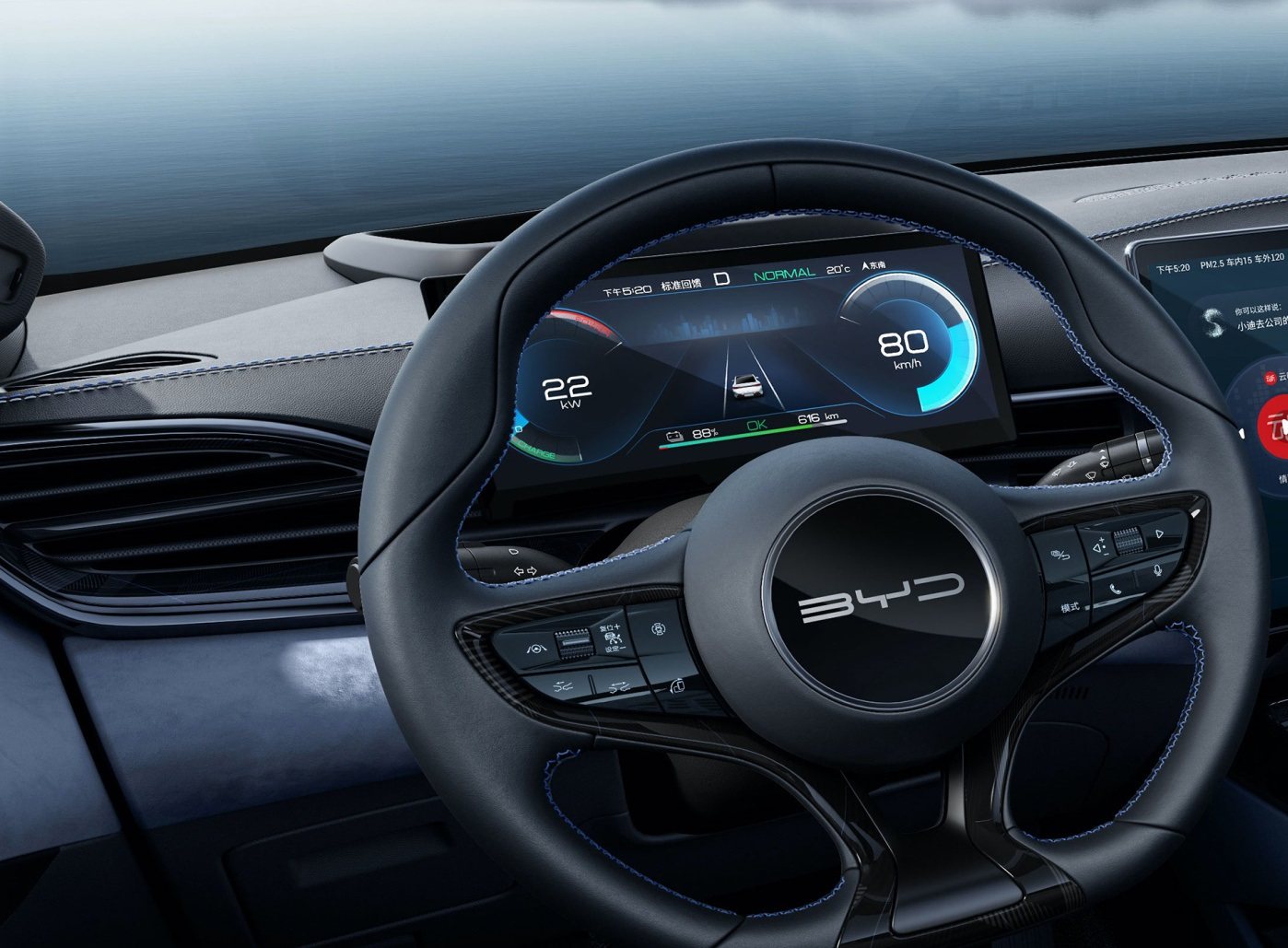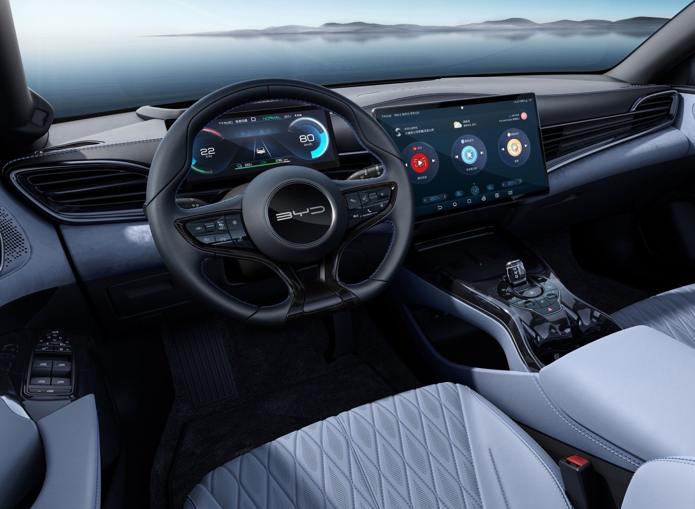 其他方面的布局设计,基本与其它比亚迪车型相似,配备了15.6英寸的自适应旋转悬浮Pad,内置最新DiLink智能网联系统,并且支持5G网络连接。另外,还配备了10.25英寸全液晶仪表盘,UI界面进行了一定调整。