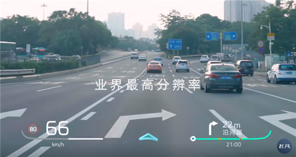 重点来了,飞凡R7搭载全球首发量产的华为视觉增强AR-HUD平视系统,能实现全球量产车型最大视场角,即在前方7.5米位置处等效呈现出70寸的大画幅显示。显示内容包含速度、限速、辅助驾驶状态,导航等信息。