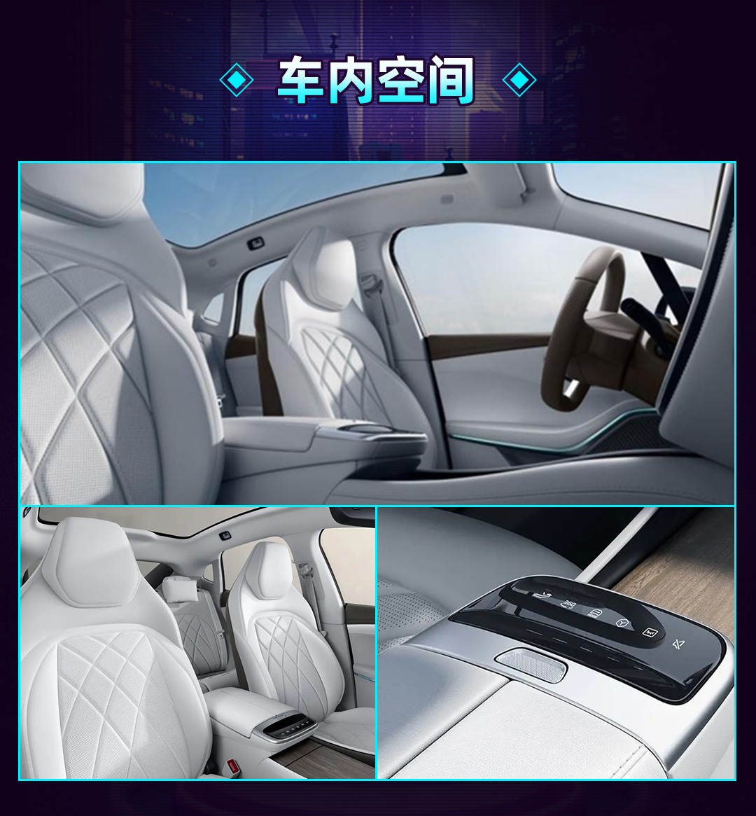 同时,几乎所有功能都被集成在了三联屏内,在车内找不到多余的实体按键。至于车机芯片则是采用了这个级别主流的骁龙8155芯片,采用7nm工艺。