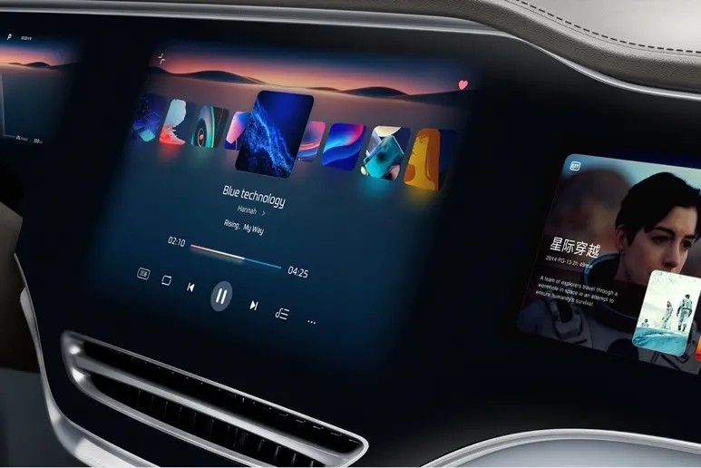 中间的那块超大屏,2.5K的高分辨率,像素密度高达200PPI,和iPad Pro(264PPI)有得一拼,清晰度和细腻度都达到很高水平,车机要做到手机和平板电脑那种水平是比较难的,而且成本也高得多。