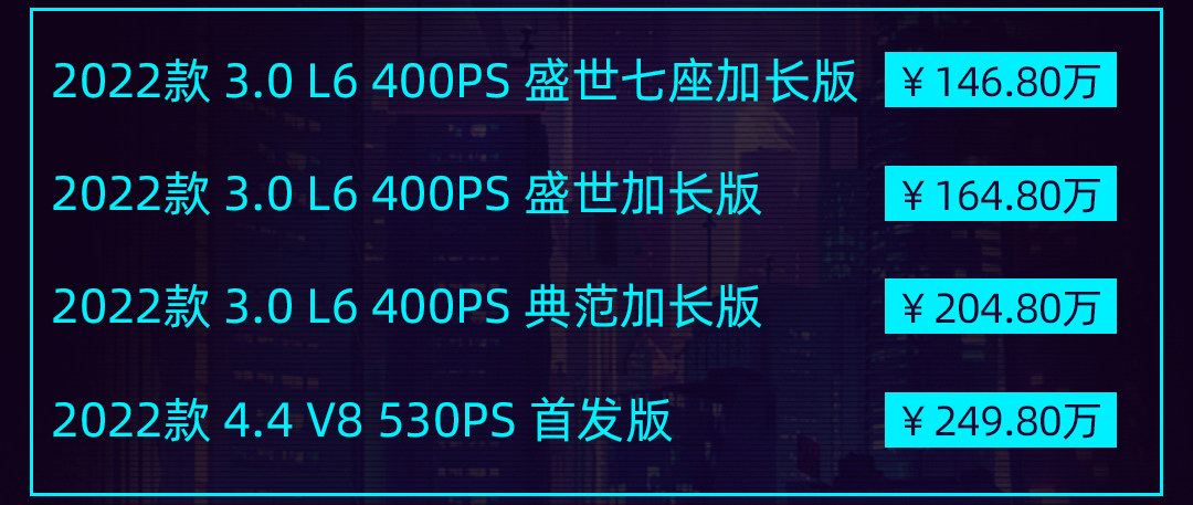 终于,在这次深圳的粤港澳大湾区车展上看到了实车,新车此前已经正式上市,售价为146.8-249.8万元,具体如下: