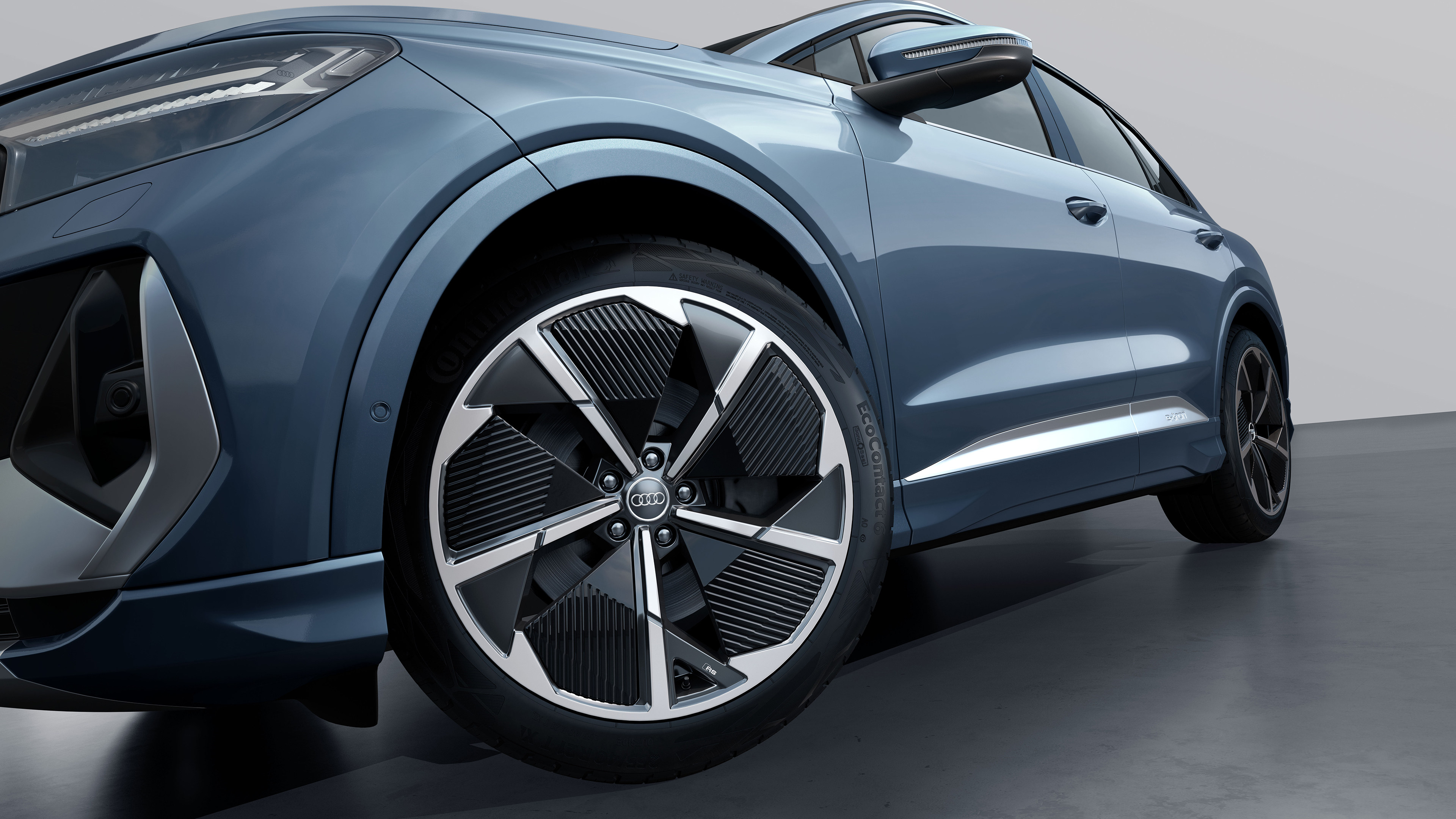 诞生自MEB平台的奥迪Q4 e-tron,具有100%纯电基因。短悬长轴、低重心、大轮毂,共同构成了奥迪Q4 e-tron独特的动感姿态。最大可搭载远超同级的21英寸Audi Sport空气动力学轮毂,赋予其如高性能车一般的近47%轮毂/车身占比,不仅赋予车辆在外观上实现跑车般的视觉冲击力,更可进一步提升车辆驾控性能。