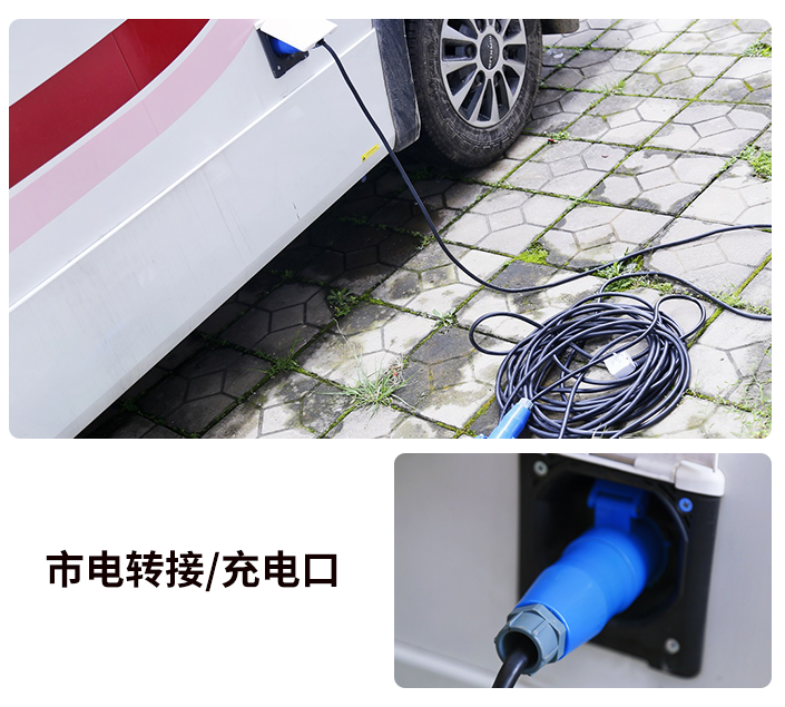 生活家V90房车配备了一条长达20米长度的市电充电线缆和家用插座的转接口,因此无需担心因设备不适用而充不到电的烦恼。