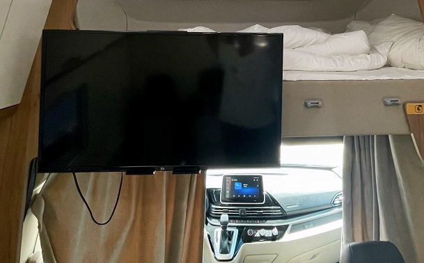 接着咱们再来聊一聊家居软装,在其他车型身上想着怎么把独立触控液晶屏玩出花的时候,生活家V90房车直接简单粗暴的把家用液晶电视给你搬了过来。插上独立的宽带网卡,随时随地都能享受娱乐影音。