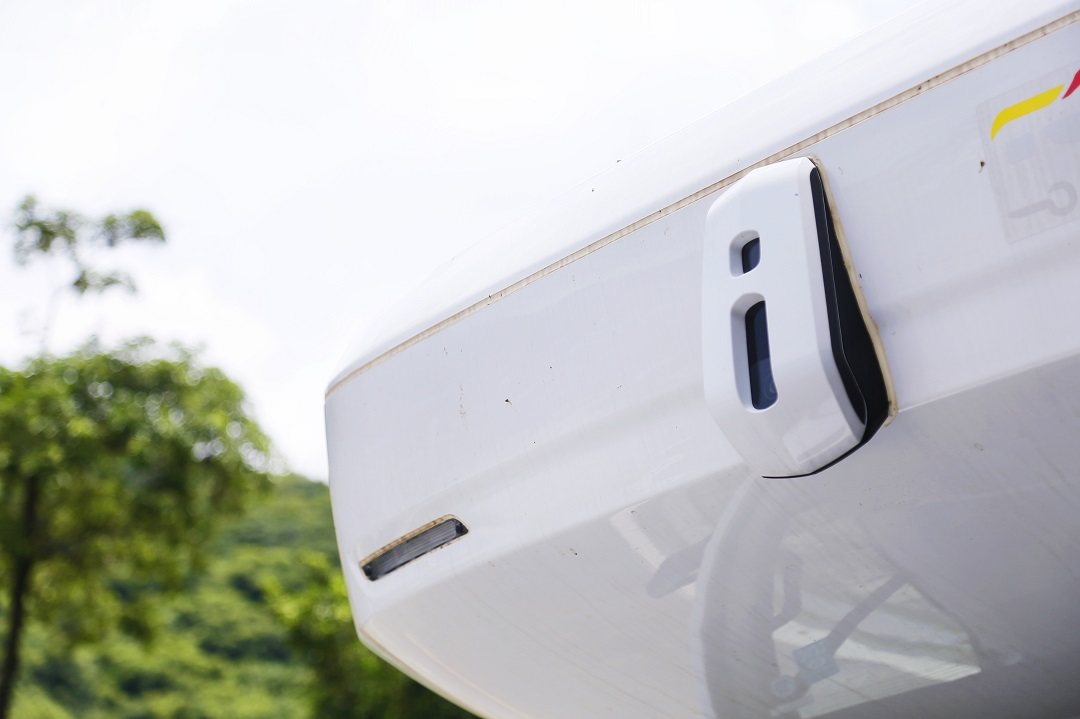 车顶带有摄像头,该摄像头能够根据前方路况识别通行宽度和高度障碍物,即便是坐在车内的视野不佳也完全不用担心。因为车辆会智能判断并通过语音警示和仪表显示前方通行的“潜在危险”。