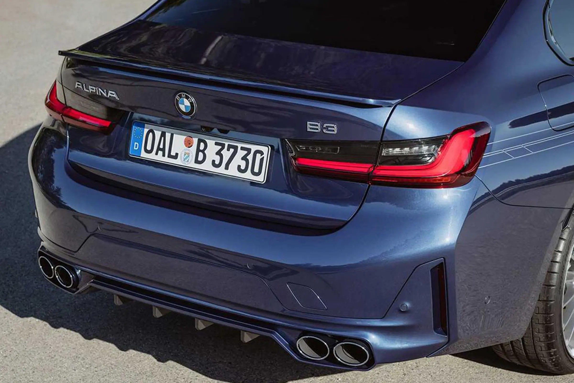 全新Alpina B3车系外观上与中期改款的宝马3系为基础打造而来,所以整体的轮廓线条还并没有太大差异。但是Alpina B3加装了Alpina专属的空力套件,包括前唇和后扩散器等空力组件,提高了不少的车辆高速稳定性和下压力,以达成更高的极速。