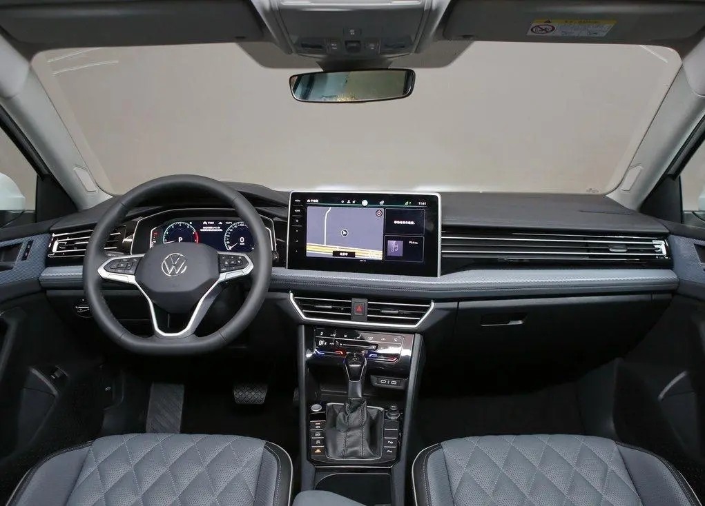 内饰主要的变化有,一是采用全新的悬浮式中控大屏,摒弃了此前的嵌入样式,并且中控屏尺寸也增大至12英寸,同时配备有10.3英寸全液晶仪表盘。二是换装了全新的三幅式方向盘,这也是今后大众家族的走向设计。