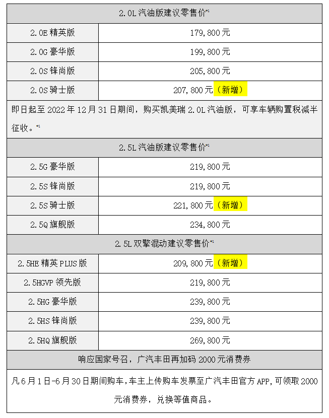① 全新骑士版为凯美瑞注入年轻新元素,1000个独立编号限定认证
