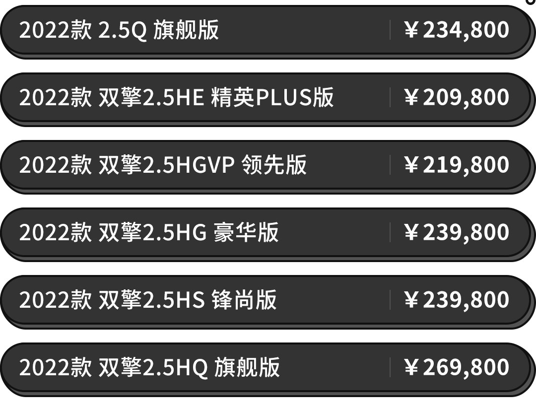 新增2.0次低配和双擎2.5H最低配,满足更多客户需求