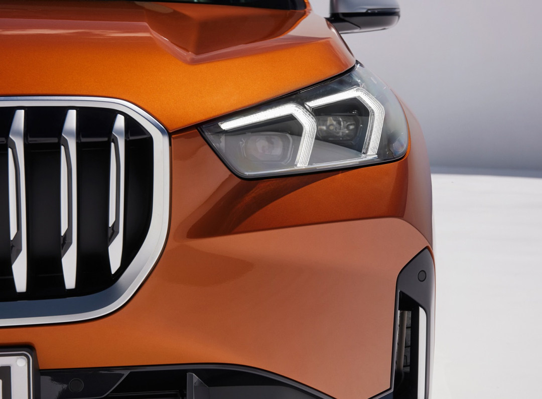 具体方面,全新宝马X1主要针对前进气格栅、头灯组进行更新,依旧采用了宝马标志性的双肾前格栅设计,尺寸略有提升,造型也更加方正,与宝马X5非常相似,提升了一定的档次感。